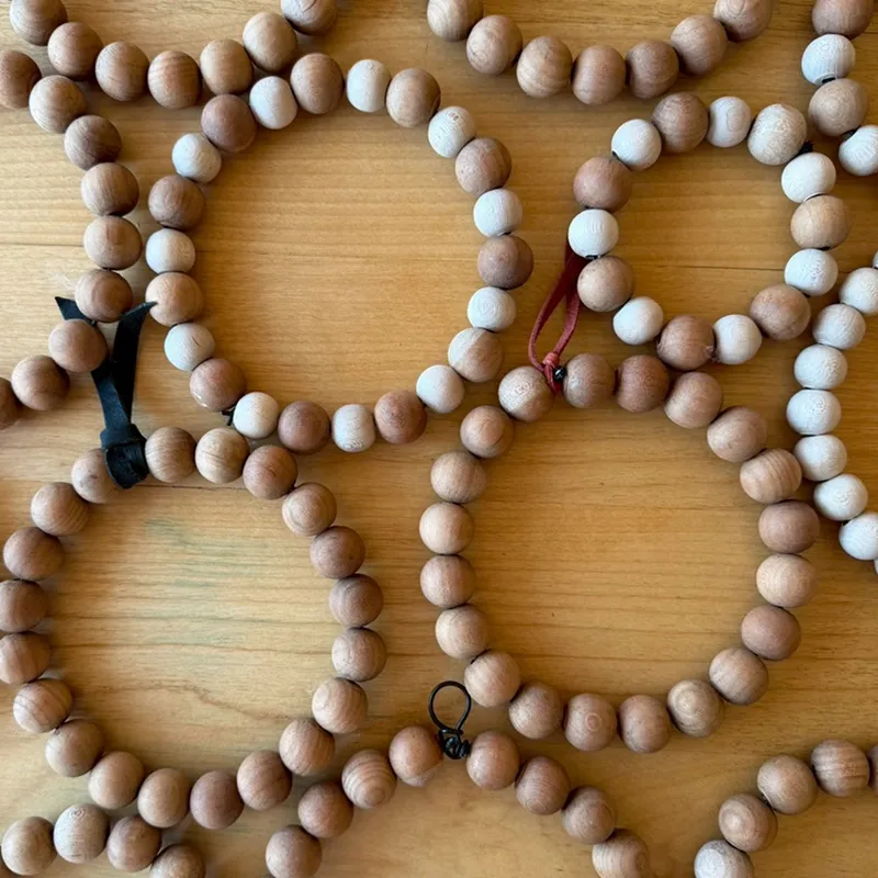 丸い木の玉を糸でつなぎ、アーチ状に垂らしたその姿は、懐かしくも美しい、日本の暮らしの風景のひとつでした。 現在、地元で珠のれんを製作する会社はたった一社のみ。しかもその素材の多くは、残念ながら海外製の珠が使われています。