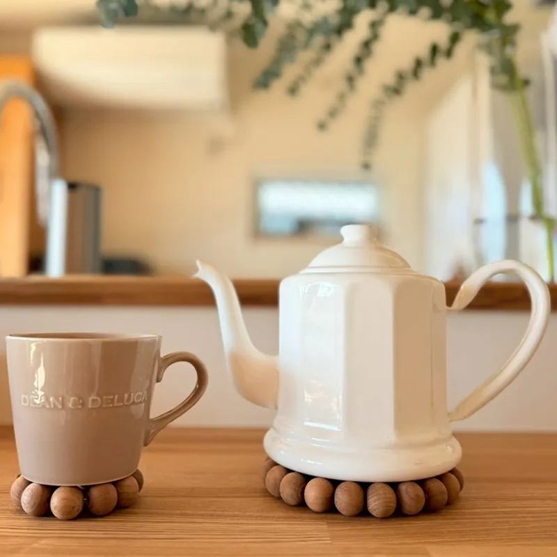 小さな木の珠たちが風に揺れて、やさしくカタコト、木の音を奏でます。